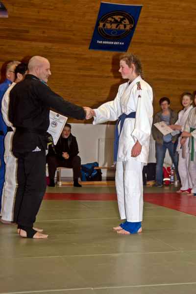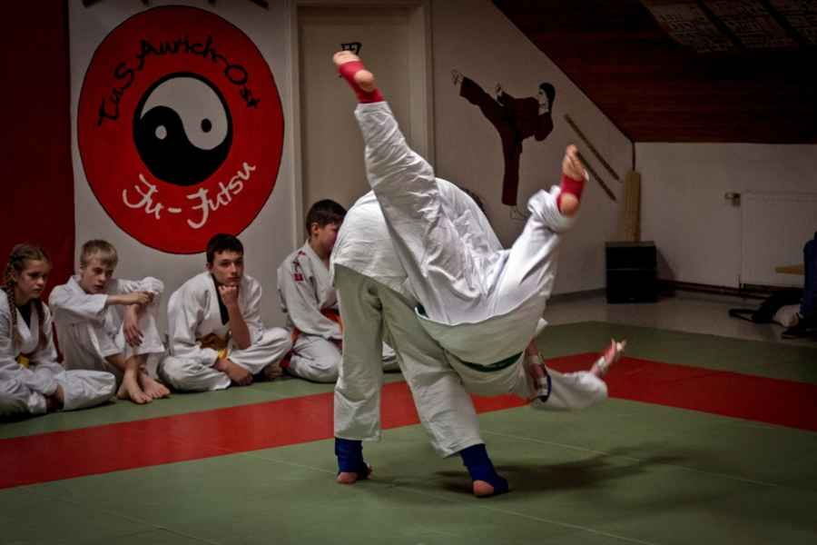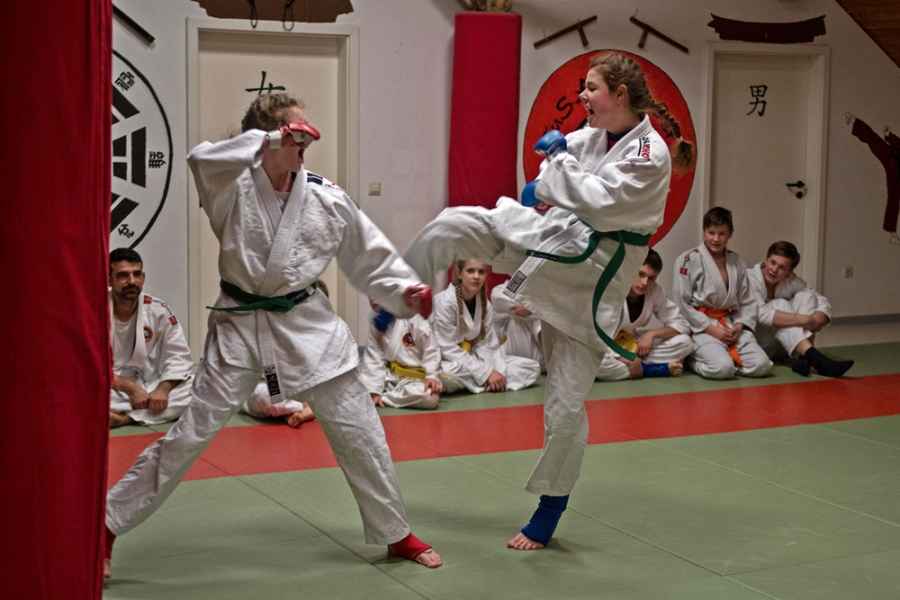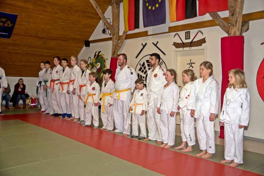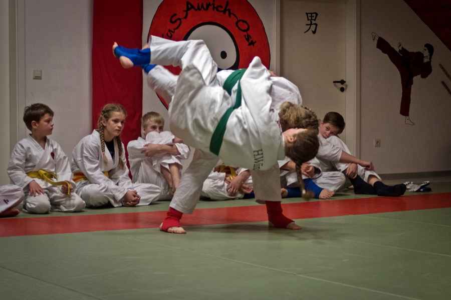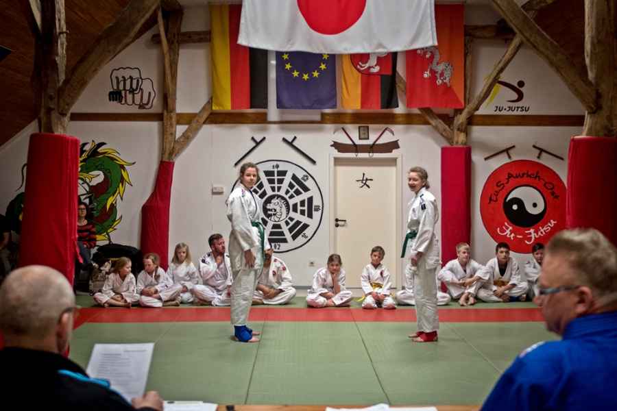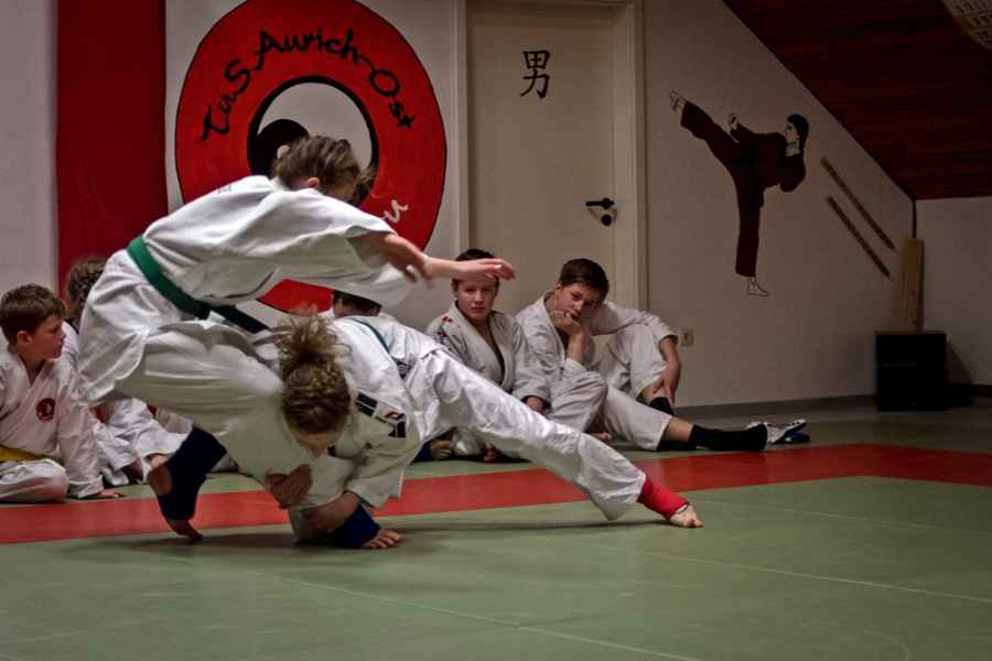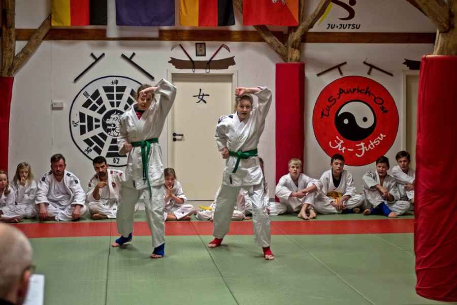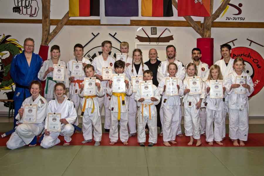 18 Prüflinge des TuS Aurich-Ost e.V. ließen sich von Sven Rohl (5.Dan Ju-Jutsu) und Cong Phu Nguyen (2.Dan Ju-Jutsu) zum nächst höheren Gürtel prüfen. Der jüngste Prüfungsteilnehmer war 5 Jahre alt und der älteste Teilnehmer 56 Jahre alt. Geprüft wurde vom weiß/gelben Gürtel bis hin zum blauen Gürtel.
