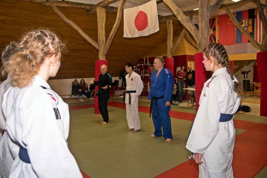 - den Anwendungsformen, hier stellten die Prüflinge dar, dass sie in der Lage sind , sich gegen komplexe Angriffe aktiv zur Wehr zu setzen, wobei die Angriffe unmittelbar aufeinander folgen.
